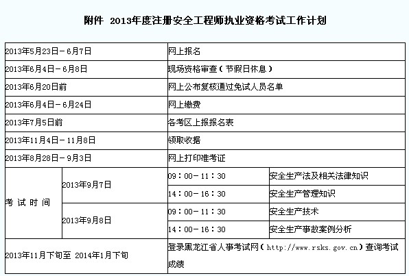 2013年黑龍江安全工程師考試報名通知