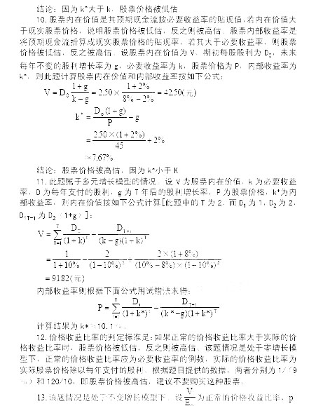 2.債券定價(jià)原理應(yīng)從債券價(jià)格、債券收益率等變化及其相互關(guān)系的幾個(gè)方面來(lái)說(shuō)明。第一,如果債券的市場(chǎng)價(jià)格低于其面值,則債券的到期收益率高于票面利率;反之,如果債券的市場(chǎng)價(jià)格高于其面值,則債券的到期收益率低于票面利率。第二,如果一種債券的市場(chǎng)價(jià)格上漲,則其到期收益率必然下降;反之,如果一種債券的市場(chǎng)價(jià)格下降,則其到期收益率必然上升。第三,如果債券的收益率在整個(gè)期限內(nèi)沒(méi)有發(fā)生變化,則債券的價(jià)格折扣或升水會(huì)隨著到期日的接近而減少,或者說(shuō)其價(jià)格將日益接近面值。第四,如果一種債券的收益率在整個(gè)期限內(nèi)沒(méi)有變化,則其價(jià)格折扣或升水會(huì)隨債券期限的縮短而以一個(gè)不斷增加的比例減少。第五,債券收益率的下降會(huì)引起債券價(jià)格提高,債券格提高的金額在數(shù)量上會(huì)超過(guò)債券收益率以相同幅度提高時(shí)所引起的價(jià)格下跌的金額。第六,如果債券的息票利率較高,則因收益率變動(dòng)而引起的債券價(jià)格變動(dòng)百分比會(huì)較?。ㄟ@一原理不適用于一年期債券或終生債券)。