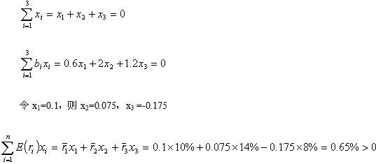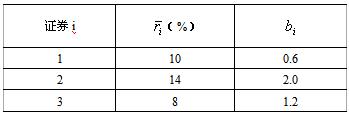 設(shè)想一個(gè)投資者擁有三種證券,其投資于每種證券的當(dāng)前市值均為50000元,此時(shí)該投資者可投資的財(cái)富為150000元。這三種證券的預(yù)期回報(bào)率和敏感性如表所示。