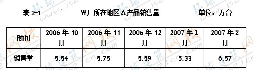 W廠生產(chǎn)的A產(chǎn)品目前的市場(chǎng)份額與最大競(jìng)爭(zhēng)對(duì)手的市場(chǎng)份額的比率(相對(duì)市場(chǎng)份額)為1.2,市場(chǎng)成長(zhǎng)率為14%。鑒于目前的市場(chǎng)態(tài)勢(shì),該廠擬調(diào)整2007年二季度的生產(chǎn)計(jì)劃。為此,委托Y咨詢公司對(duì)該廠所在地區(qū)的A產(chǎn)品銷售量進(jìn)行預(yù)測(cè)。Y公司根據(jù)本公司目前僅有的行業(yè)統(tǒng)計(jì)信息庫(kù),統(tǒng)計(jì)了W廠所在地區(qū)2006年10月。2007年3月的A產(chǎn)品銷售量,見表2-1.