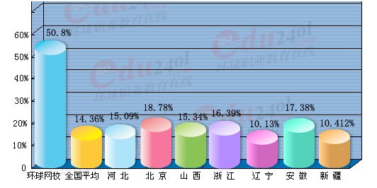 全國全科通過情況:2009年全國報考全科的平均通過率為14.36%,該比率在全國其他部分地區(qū)為河北15.09%、北京18.78%、山西15.34%、浙江16.39%、遼寧10.13%、安徽17.38%、新疆10.412%。環(huán)球網校全科通過率為50. 8%,是全國平均水平的3倍以上。