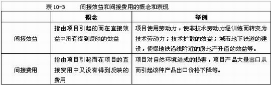 間接效益和間接費用的概念和表現(xiàn)如下表10-3所示。