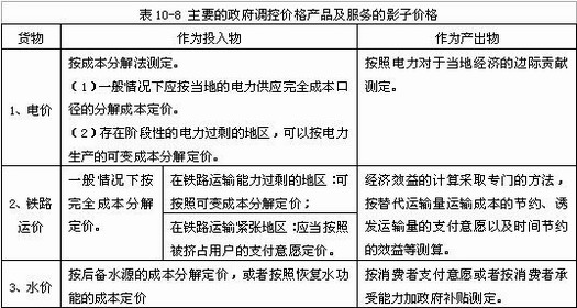 (二)幾種主要的政府調(diào)控價(jià)格產(chǎn)品及服務(wù)的影子價(jià)格(如表10-8所示)