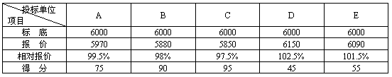 解:1.計(jì)算各投標(biāo)單位相對(duì)報(bào)價(jià)及得分見表4.2