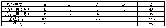 2.計(jì)算各投標(biāo)單位工期提前率及得分見表4.3
