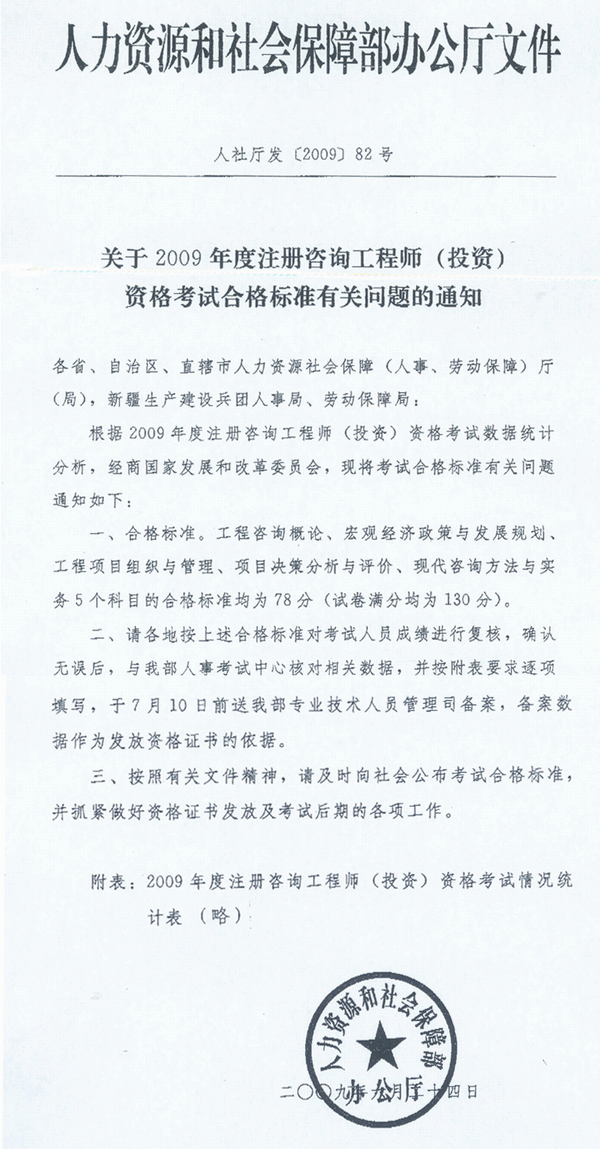 2009年注冊(cè)咨詢(xún)工程師(投資)考試合格標(biāo)準(zhǔn)