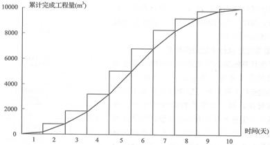 這種方法是以時間為橫軸,以完成累計工作量(該工作量的具體表示內(nèi)容可以是實物工程量的大小、工時消耗或費用支出額,也可以用相應(yīng)的百分比來表示)為縱軸,按計劃時間累計完成任務(wù)量的曲線作為預(yù)定的進度計劃。從整個項目的實施進度來看,由于項目的初期和后期速度比較慢,因而進度曲線大體呈S形。如圖所示 。