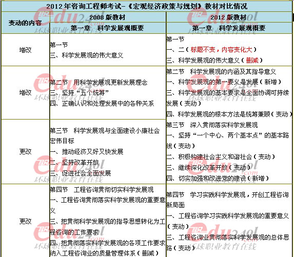 2012年咨詢工程師新舊教材對(duì)比《宏觀經(jīng)濟(jì)政策與發(fā)展規(guī)劃》