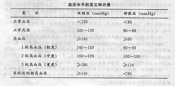 《中國高血壓防治指南》(2005年修訂版)按血壓水平將血壓分為正常血壓、正常高值及高 血壓。血壓定義為:在未用抗高血壓藥情況下,收縮壓≥140mmHg和/或舒張壓≥90mmHg