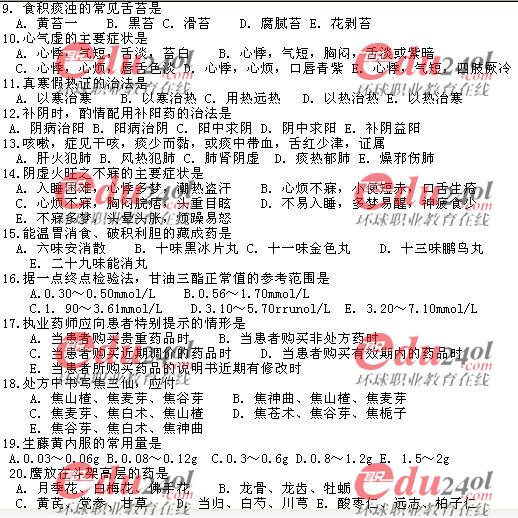 2007年中藥綜合知識(shí)和技能考試真題全套