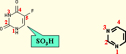 以嘧啶為母體,在5位連有氟,1,3位有氫,2,4位有酮。